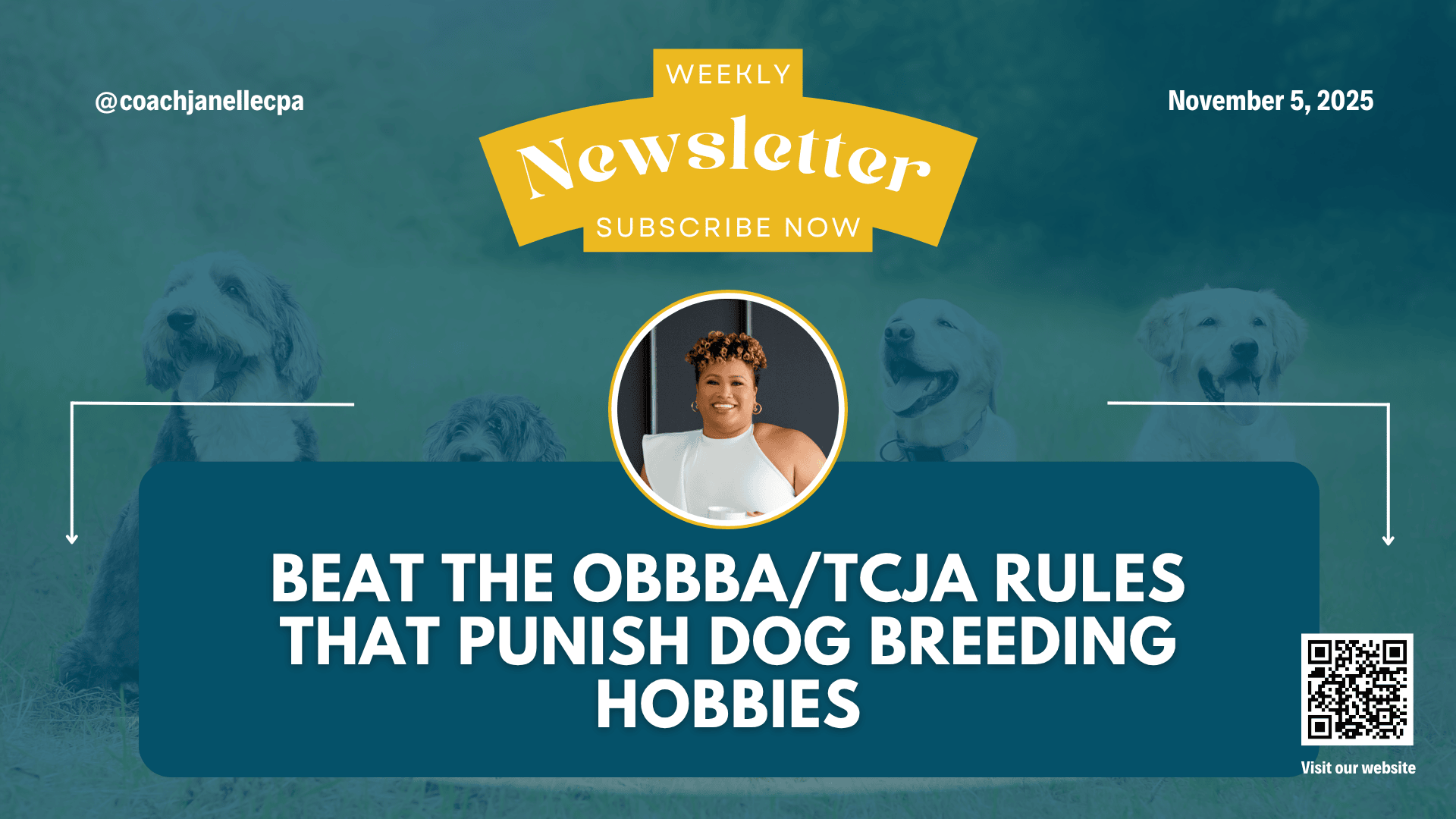 Turning your dog breeding activity into a recognized business doesn’t happen by accident—it takes strategy and consistency. Coach Janelle CPA can help you plan, document, and position your breeding venture for long-term success. Schedule a discovery call today.
