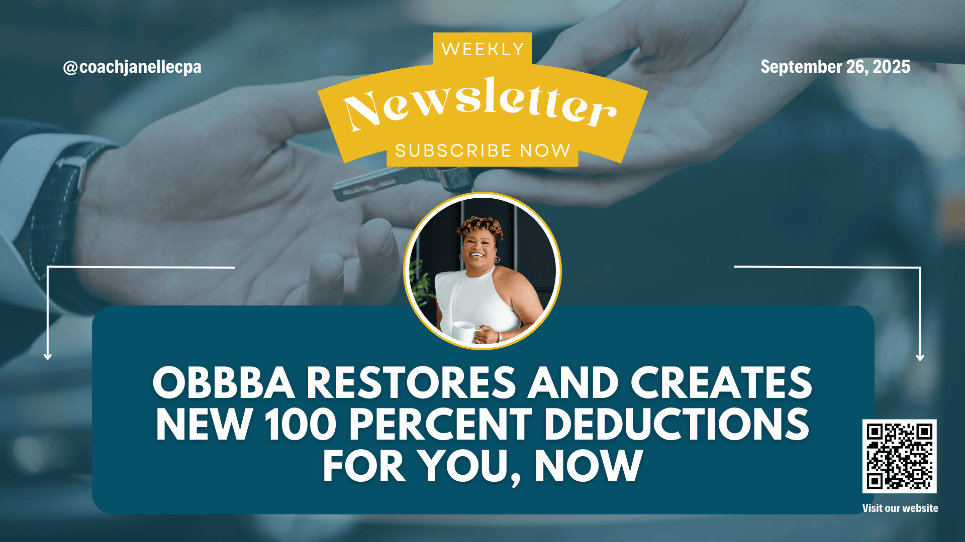 With the new One Big Beautiful Bill Act restoring 100% deductions, it’s a smart time to look at how your business investments can create bigger tax savings. If you’d like to explore how this fits into your strategy, book a discovery call with Coach Janelle CPA today.